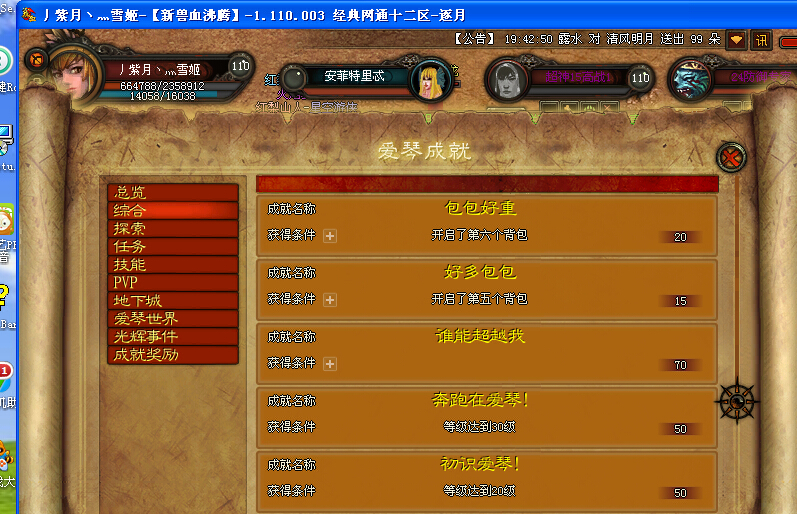 同学, 你截图一个 你游戏左上角的, 游戏内 打开成就界面, 然后进行截图, 截图内包括你无法完成的成就, 还有你的角色名信息, 大区,服务器 都要有。