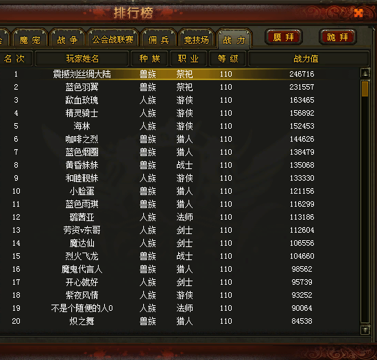 ``````看来还是BY电信一的战力榜牛哦!都33W的战力了!!