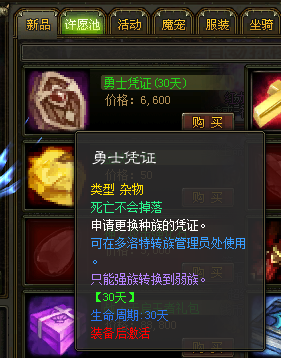 商城中有一个“勇士凭证”可在多洛特转族管理员处使用但只能强转弱族。技能是已学的技能保留没学过的技能需要学。