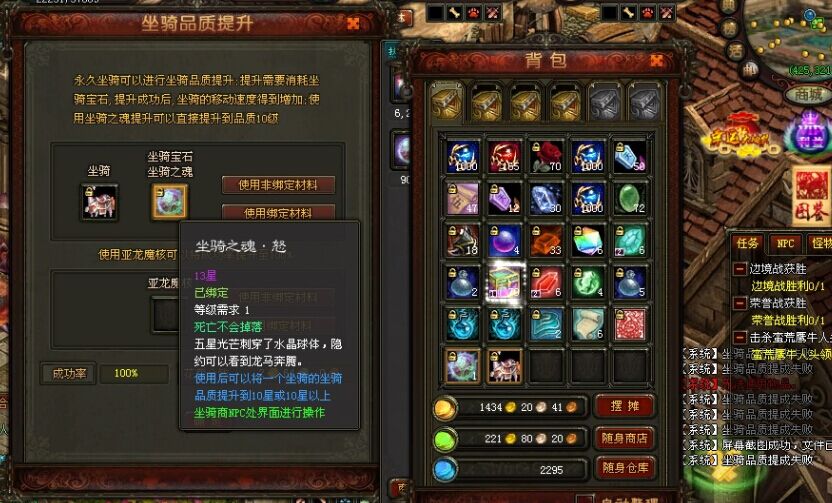 坐骑是10星的。坐骑之魂是13星。是不能提升