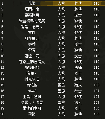赶紧合区把,在不合区人都跑光了,就这中情况兽族想升110最快的一个人也得20天