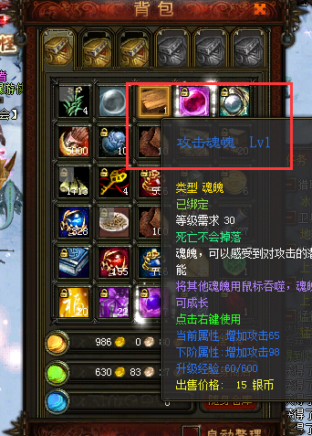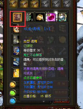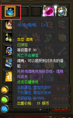 关于攻击魂魄LV1功能及道具栏存放异常报错