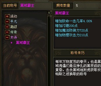 刚刚弄的最高称号。黑域霸主,感觉这颜色满不气势的!