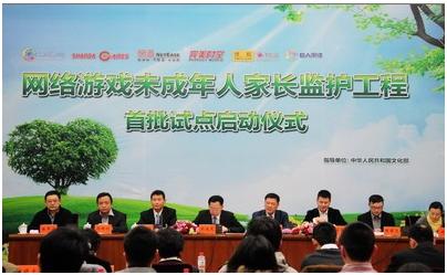 201025日上午10点,“网络游戏未成年人家长监护工程”首批试点启动仪式在中华人民共和国文化部会议厅举行。中国网络游戏行业六家知名企业——完美时空、腾讯、盛大、网易、畅游、巨人网络共同发起并推出了“网络游戏未成年人家长监护工程”(试行版),共同担负起引导未成年人健康游戏的社会责任。发布会上,文化部文化市场司司长李雄对此工程给予了积极评价和正面总结,鼓励并希望所有网游厂商均加入该工程。伴随着六家网游企业高层与文化部有关领导按下启动装置,“网络游戏未成年人家长监护工程”正式宣告启动试行,文化部、游戏企业、未成年玩家和玩家家长四方之间也开始建立起成体系的沟通机制。
