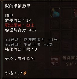 这位兄弟,我看你气度不凡,谈吐间隐隐有王霸之气,日后必有一番作为……买个银鳞胸甲