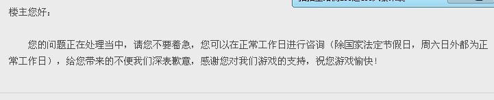 结果我是一个没领到。。。反映都3天了。。还说什么正常的工作日来询问。。还要了我的手机号码。。我想问。。玩家出了问题你们都说要玩家到正常的工作日在来。前天是星期几/昨天是星期几/今天又是星期几/连这都不是你们的工作日。。我想不出你说的除了法定节日和星期6和星期日外。。还有那天是你们的正常工作日。。。别的废话小弟就不多说了。。就凭这几个。。我相信。。兽血这个游戏。。你还能走多远