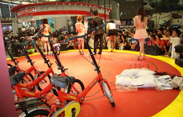 每年chinajoy,各家展商周边都会是观众关注的目标,而独特又有个性的周边,往往会给人留下深刻的印象。今年,百游展台送出Chinajoy史上最大周边——折叠自行车。而这些自行车,只要参与现场玩家互动活动,即可获得。这些自行车一在展台亮相,就引发众多观众的围观和疯狂抢夺。