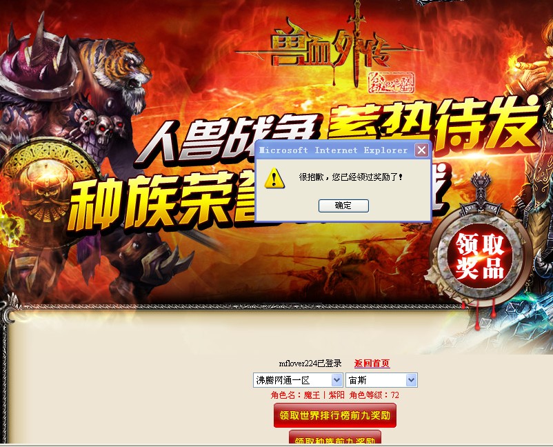 我是沸腾网通一区,宙斯服务器的玩家,10月7号冲级赛结束几分钟,别的玩家纷纷领取到点券金叶子奖励,我世界排行榜第二名,我去领取奖励,提示我已经领取过奖励,真有意思,冲级赛刚刚结束几分钟,我头一次去领取竟然显示我已经领取过奖励!这不是胡闹吗?!百 游总是爱干这种事情,VIP提交问题也他们总是复制那句无聊的话!我花那么多钱那么多时间那么多精力,整天熬夜冲级,这就是结果,连应有的奖励也领取不了!!!提交问题总是不给解决,客 服电话永远没人接听!!有G M看到帖子麻烦你们尽快解决问题,发放我应有的奖励110000点券和110个金叶子,不要等到别人都弄好装备,升到80级了还不给我解决!