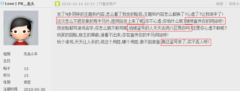 可能经济上有问题,但有做网站下木马的本事,为了打造90级6孔精制极品套吧,用了无此下烂的手断