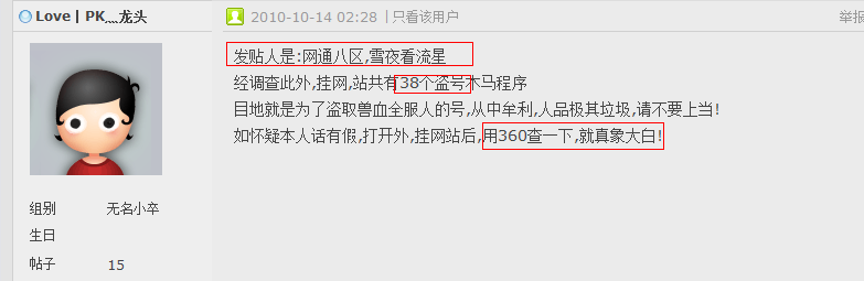 目地是让看贴的人,进入网站,中木马,盗取帐号,从中牟利