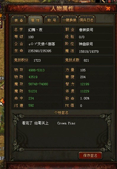 得,26楼的长篇大论被一张图反驳了~~~告诉你,祭祀攻击相比其他职业是低了点,你知道他给魔宠加成多少攻击吗,你知道魔宠能帮祭祀抵挡多少伤害吗,你知道祭祀有个技能天赋:100%把收到伤害的10%用来治疗魔宠吗,你知道祭祀有个技能:魔宠帮主人承受40%伤害吗。别老拿祭祀的短处跟游侠的长处比,也别老拿VIP,加速药水说什么追不上,追不上你也买个VIP吃个加速不得了