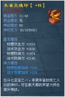 如:朱雀炎魂印【+15】属性如下:
